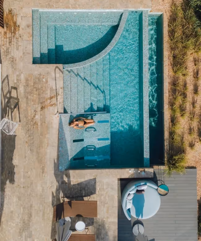 Das 7Pines Resort Ibiza bietet mit seinen 185 Suiten und zwei luxuriösen Grand Villas einige der exklusivsten Unterkünfte der Insel. Die Suiten sind in drei unterschiedlichen Bereichen des Resorts verteilt: das charmante Ibicenco Village, die idyllische The Laguna-Zone und die eleganten The Cliff Suites. Jede Suite ist entweder mit einer privaten Terrasse oder einem Balkon ausgestattet, die einen atemberaubenden Blick auf das Resort, die gepflegten Gärten oder das funkelnde Mittelmeer bieten. Einige Suiten verwöhnen ihre Gäste zusätzlich mit einem privaten Pool, der für noch mehr Privatsphäre und Entspannung sorgt.