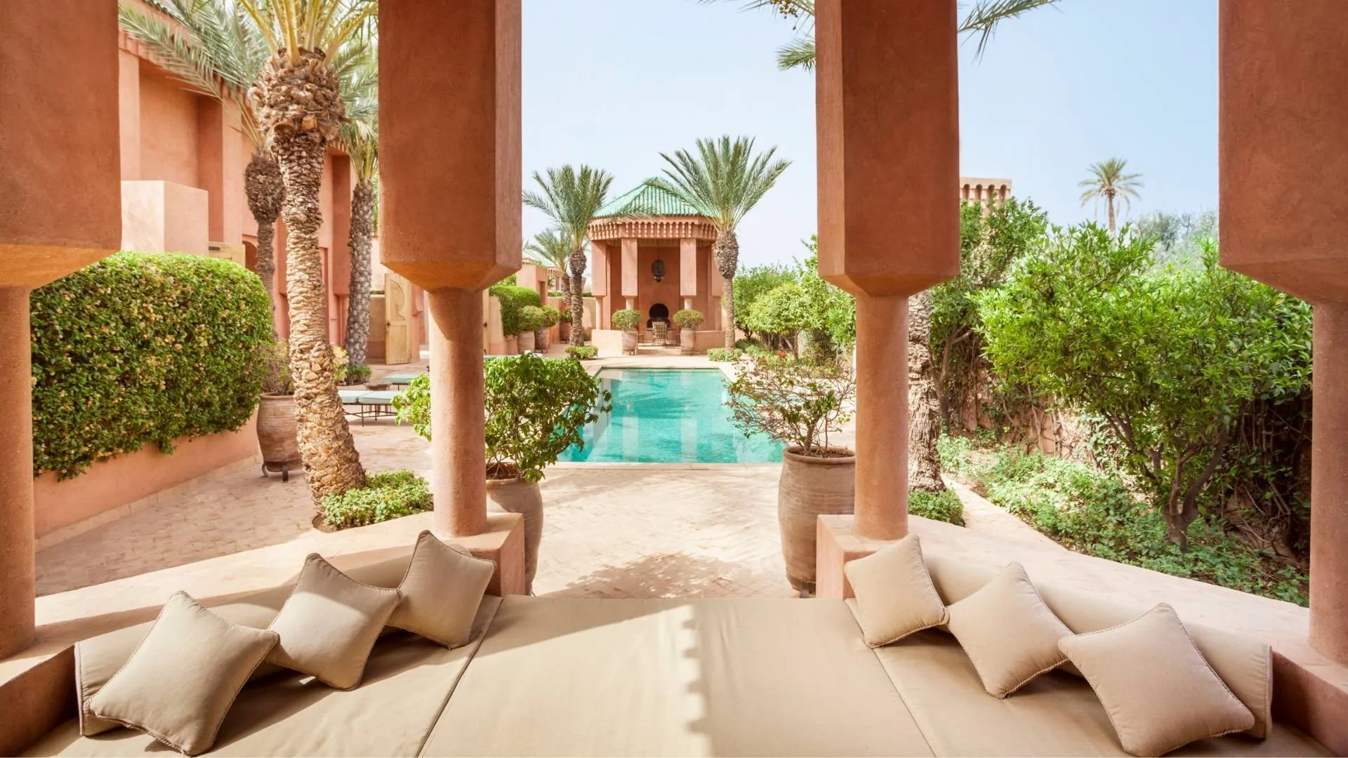 Eingebettet in eine paradiesische Oase aus Olivenhainen und Dattelpalmen, entfaltet sich die zauberhafte Welt des Amanjena. Ein neun Meter hoher Säulengang führt Sie vorbei an schattigen Innenhöfen und erfrischenden Springbrunnen direkt ins Herz des Resorts: Das funkelnd grüne Bassin, das das Zentrum des Anwesens ziert. Inspiriert von dem antiken Regenwasserpool der Menara-Gärten in Marrakesch, verströmt es eine einzigartige, orientalische Atmosphäre. Kaum vorstellbar, dass dieser Ort der Ruhe nur einen Steinwurf entfernt von der lebendigen Metropole Marrakesch liegt. Der Name „Amanjena“ bedeutet „friedliches Paradies“ – ein Ausdruck, der dieses wunderschöne Refugium perfekt widerspiegelt.