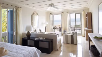 Wählen Sie zwischen einer Unterkunft im Hauptgebäude oder in ruhiger Gartenlage. Die handgefertigte mediterrane Einrichtung, das helle Dekor, stilvolle Jalousien und der offene Wohnbereich schaffen ein Ambiente von luftiger Weitläufigkeit und entspannter Eleganz.