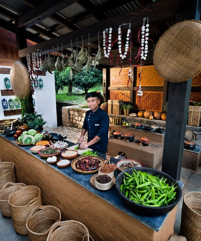 Die Lodge legt besonderen Fokus auf die Verwendung regionaler Zutaten. Frisches Gemüse, Kräuter und Reis werden nach traditionellen bhutanischen Rezepten zubereitet. Gäste können köstliche Spezialitäten wie Ema Datshi und andere saisonale Gerichte genießen. Ob am Flussufer, inmitten der Reisfelder oder im traditionellen Speisesaal - jede Mahlzeit wird zu einem unvergesslichen Erlebnis.