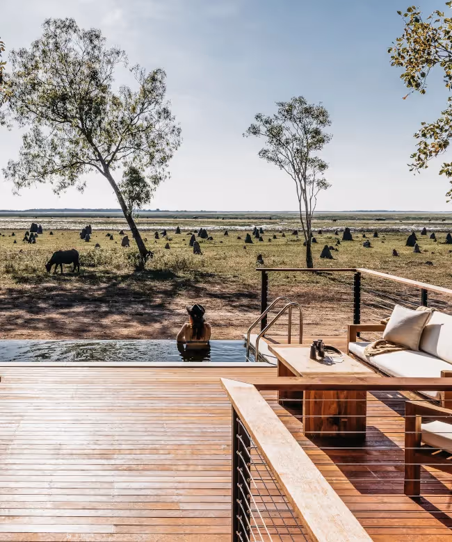 Jeder der zwölf Safari-Bungalows in den Bamurru Plains steht auf einer erhöhten Plattform, die einen atemberaubenden Blick auf die umliegende Natur eröffnet. Die Gäste genießen einen beeindruckenden 180°-Panoramablick in die Wildnis.