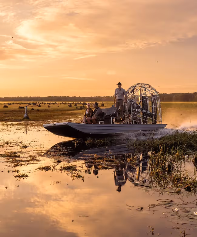 Die Tierwelt in den Bamurru Plains ist eine der beeindruckendsten in Australien. Von Auen und Feuchtgebieten finden Sie dort atemberaubende Wälder und Savannen in denen Büffel, Dingos und Wallabys leben sowie eine Flusslandschaft mit tausenden von Fischen und Krokodilen. Erkunden Sie diese faszinierende Landschaft mit dem Luftkissenboot, bei Wanderungen, Game Drives oder mit Quads.