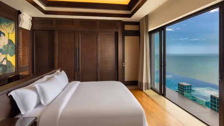 Die 124 m² große Beach Pool Villa befindet sich an Vietnams längstem und privatestem Strand und bietet direkten Zugang zu den weichen, goldenen Sandstränden sowie atemberaubende Ausblicke auf das Meer. Mit einem privaten Infinity-Pool und einem beheizten Jacuzzi, großzügigen Innen- und Außenwohnbereichen und einem eleganten Design verspricht dieses luxuriöse Refugium eine exklusive und ruhige Auszeit direkt am Meer.