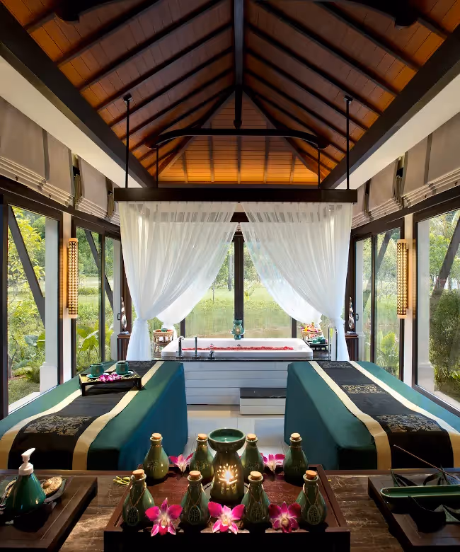 Erleben Sie pure Entspannung inmitten der Natur, wo wohltuende Massagen und natürliche, tropische Zutaten Ihre Sinne erwecken. Verwöhnende Anwendungen, wie das Revitalizing Lotus mit seinem beruhigenden Lotusduft oder die Royal Banyan Behandlung mit warmen Kräutertüchern, verbinden die besten Techniken der östlichen und westlichen Massage. Lassen Sie sich im Tropical Rainmist von sanftem Regen und pflegenden Körperpeelings verwöhnen, während ein erfahrenes Team für Ihre perfekte Erholung sorgt.