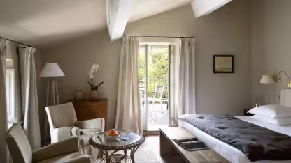 Kein Zimmer gleicht im Luxushotel Baumanière dem anderen. Manche wurden im modernen Stil renoviert, mit Mosaiken und Marmor. Bei anderen wurde das rustikale Ambiente mit Möbeln aus Massivholz und typisch provenzalischen Badezimmern bewahrt.