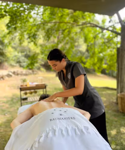 Eingebettet in die unberührte Natur des Val d'Enfer bietet das Spa des Baux einen einzigartigen Ort der Entspannung. Geneviève und Jean-André Charial haben hier ein Refugium geschaffen, das Wohlbefinden mit der Schönheit der Natur verbindet. Der 500 m² große, lichtdurchflutete Spa-Bereich aus Holz und sanft fließenden weißen Vorhängen öffnet sich zu einem idyllischen Innenhof und einem duftenden Kräutergarten. Gäste genießen exklusive Gesichts- und Körperbehandlungen in sechs privaten Kabinen sowie Annehmlichkeiten wie ein Hamam, eine Sauna, einen Erlebnispool, einen Fitnessbereich und einen gemütlichen Raum für Kräutertees.