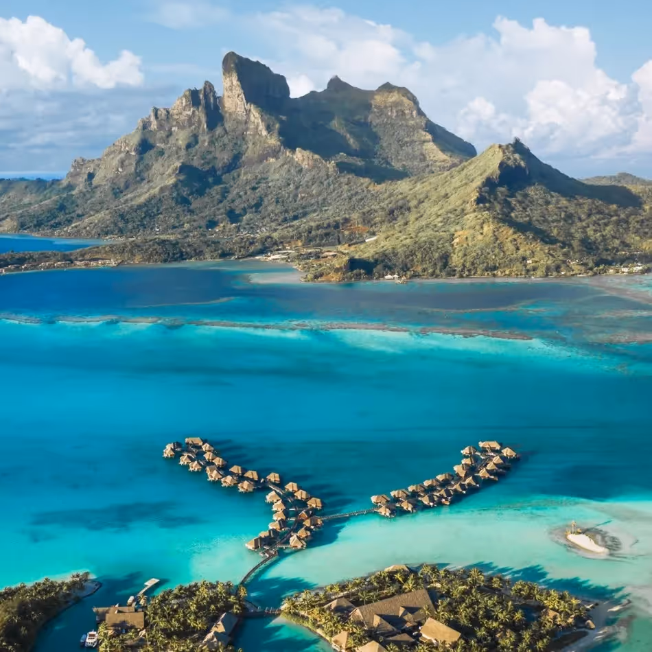 Bora Bora – ein Name wie eine Melodie, die von den sanften Wellen des Ozeans getragen wird. Der Duft von Kokosnüssen und vielleicht sogar Tahiti-Vanille liegt in der Luft, während die warmen Sonnenstrahlen die Haut kitzeln und der Wind sanft durch das Haar weht. Das azurblaue Wasser der Lagune verschmilzt nahtlos mit dem Himmel. Schon beim Anflug offenbart sich ein atemberaubendes Panorama: Die grüne Insel mit ihren majestätischen Vulkankegeln liegt eingebettet in türkisfarbene Lagunen. Bei der Ankunft fällt der Alltag von den Schultern, und pure Entspannung breitet sich aus. Das Four Seasons Resort Bora Bora empfängt Sie mit einem Kranz aus Tiaré-Blüten und den sanften Klängen der Südsee. Egal, ob Sie sich für einen Over-Water-Bungalow, eine Villa am Strand oder eine exklusive Privatinsel mit Villa entscheiden – hier wird Ihr persönlicher Südseetraum wahr.