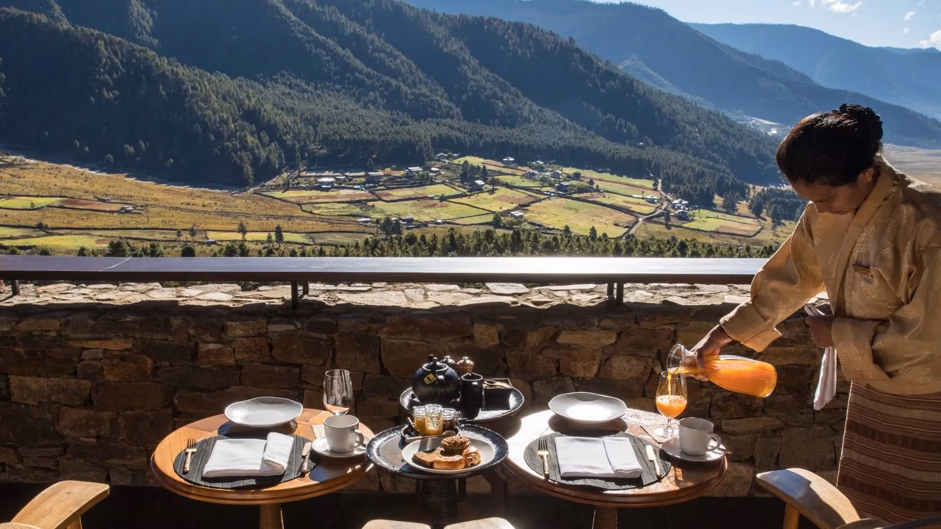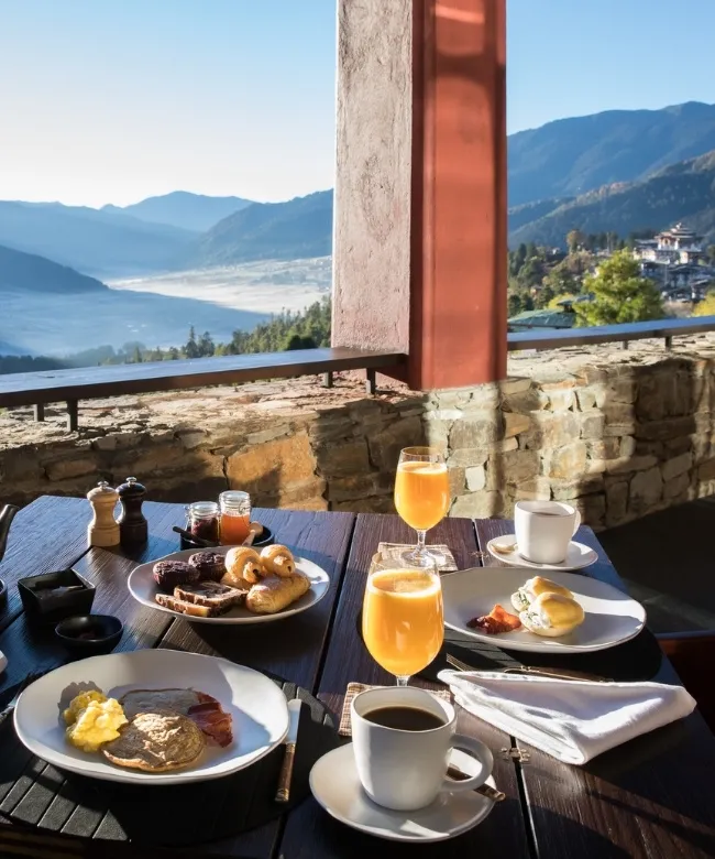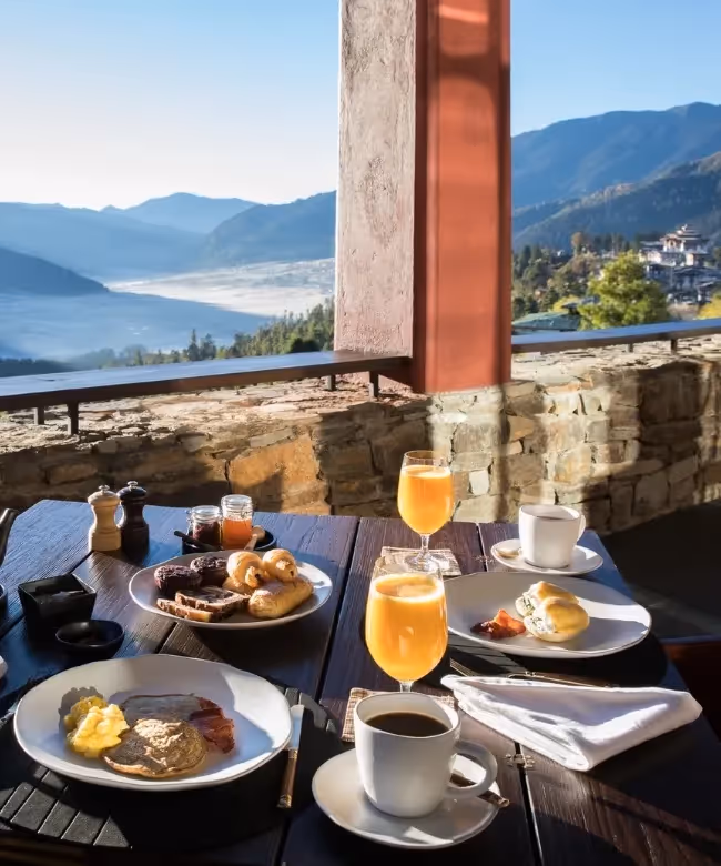 Erleben Sie kulinarische Genüsse in einer einzigartigen Atmosphäre. Lassen Sie sich von den exotischen Aromen des bhutanischen Menüs verzaubern oder finden Sie Komfort in altbekannten Gerichten. Inspiriert von regionaler Küche bieten die kreativen Menüs eine wahre Geschmacksexplosion. Die Köche gehen gerne auf Ihre individuellen Vorlieben ein und zaubern maßgeschneiderte Gerichte, die Ihr kulinarisches Erlebnis unvergesslich machen.Die gemütliche Atmosphäre mit Ledersofas, Steinkaminen und handgewebten Teppichen lädt zu entspannten Abendessen ein. Für ein besonderes Erlebnis genießen Sie Ihr Mahl im privaten Holzschuppen mit atemberaubendem Blick auf das Gangtey Tal.Zubereitet aus saisonalen, lokal angebauten Zutaten, die das reiche Erbe Bhutans widerspiegeln, bietet die Küche authentische Geschmackserlebnisse.