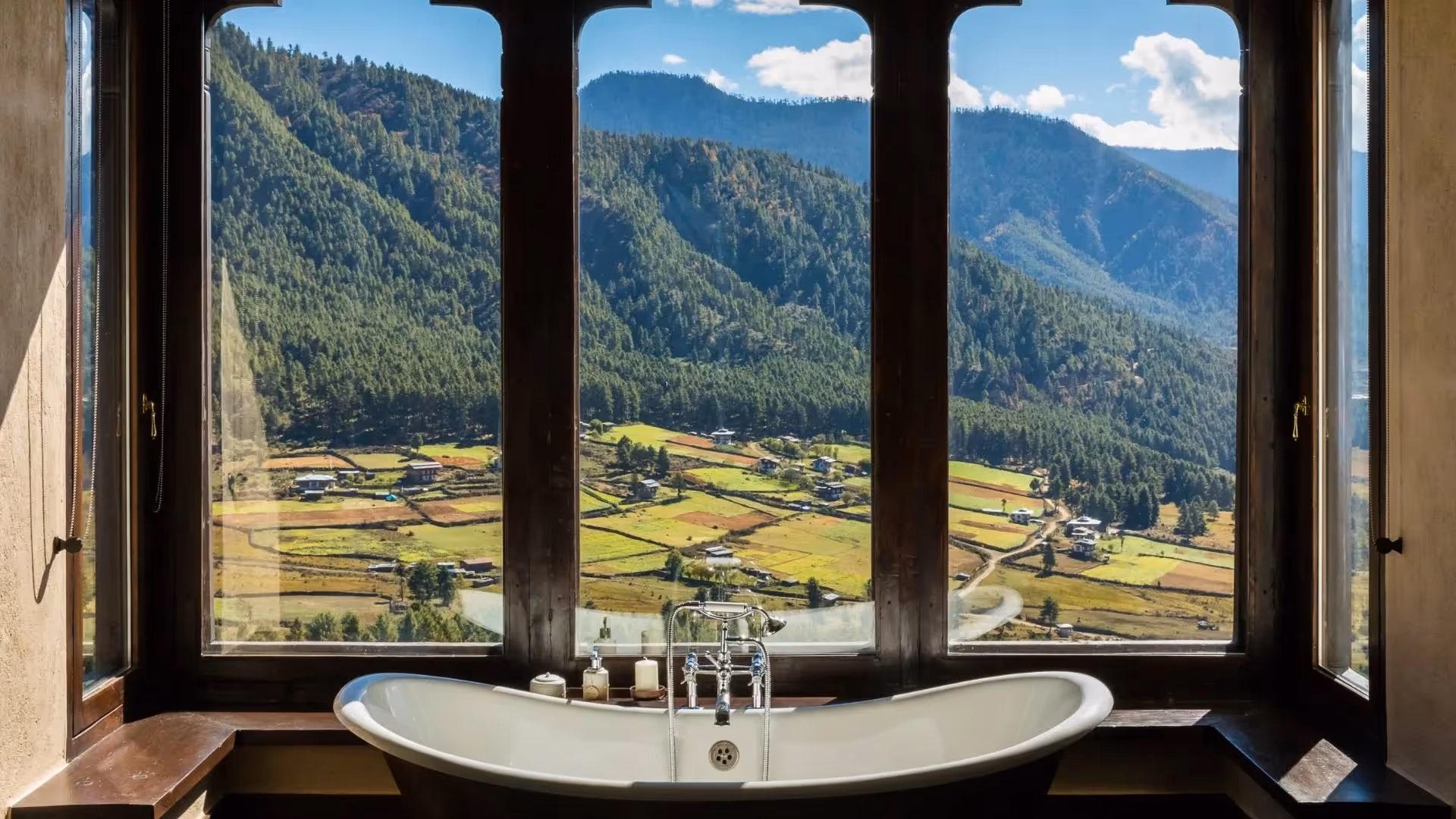 Die insgesamt 12 Farmhouse-Suiten bieten ein luxuriöses und zugleich friedliches Ambiente, das zur vollkommenen Entspannung einlädt. Nach einem ereignisreichen Tag voller Abenteuer und Entdeckungen im Gangtey-Tal kehren Sie in Ihre private Oase zurück, wo Sie am knisternden Kamin verweilen oder ein entspannendes Bad mit atemberaubendem Blick auf das Tal genießen können.