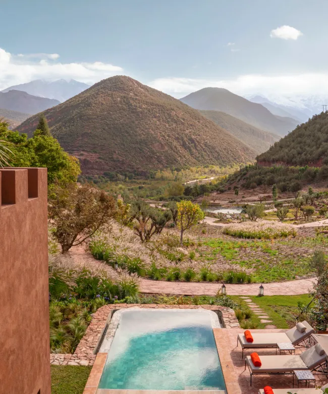 Auf einer seiner berühmten Expeditionen mit einem Heißluftballon entdeckte Sir Richard Branson vom Himmel aus einen wahrhaft magischen Ort am Fuße des Atlasgebirges. Fasziniert von der Lage und der Schönheit dieses traditionellen Herrenhauses nahe Marrakesch, erwarb er das Anwesen und gestaltete es vor rund 20 Jahren zu einem luxuriösen Rückzugsort mit nur 27 individuell eingerichteten Zimmern und Suiten.
