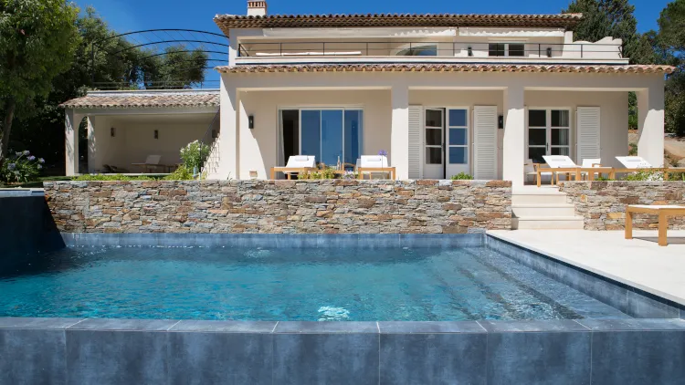 Die 250 m² große Villa mit drei Schlafzimmern ist ein ruhiger Rückzugsort, der dennoch nur wenige Minuten von Saint-Tropez entfernt liegt. Von der großzügigen Terrasse mit Whirlpool und dem privaten Infinity-Pool genießen Sie einen atemberaubenden Blick auf die Côte d’Azur und die zauberhaften Aussichtspunkte des 2.000 m² großen Gartens.