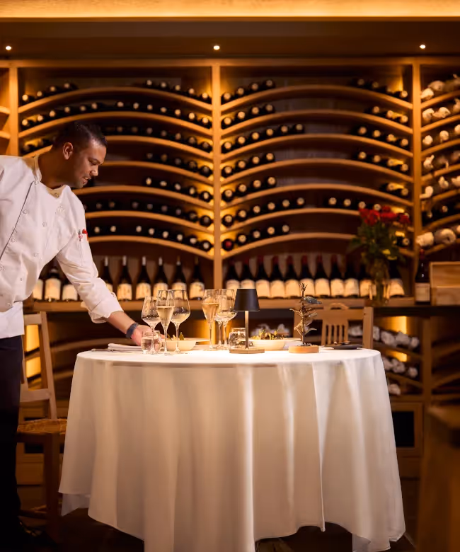 Im von Tomeu Esteva entworfenen Wine Studio des Hotels können Gäste in stylischem Ambiente an einer Weinprobe der mehrfach prämierten Spitzenweine der Marke Mullineux & Leeu Family Wines teilnehmen. Chris und Andrea Mullineux sind die Winzer des Weinguts.