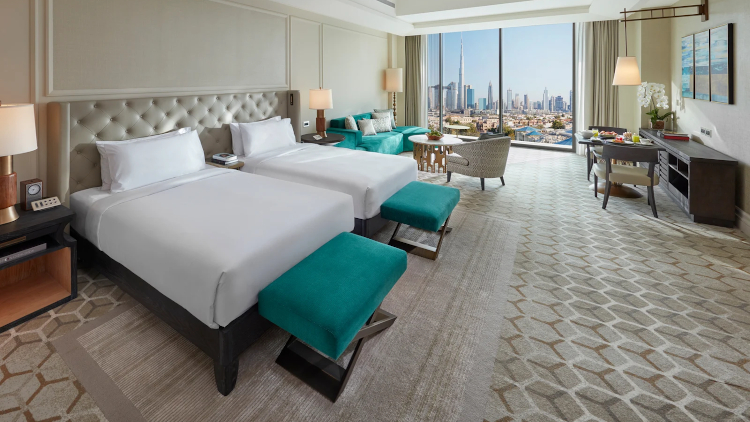 Die 178 Zimmer und 78 Suiten des Hotels verbinden modernes Design mit stilvollem Komfort und bieten einen unvergesslichen Aufenthalt. Einige Zimmer gewähren einen herrlichen Blick auf den Arabischen Golf, während andere die beeindruckende Skyline von Dubai und den weltberühmten Burj Khalifa in den Mittelpunkt stellen.