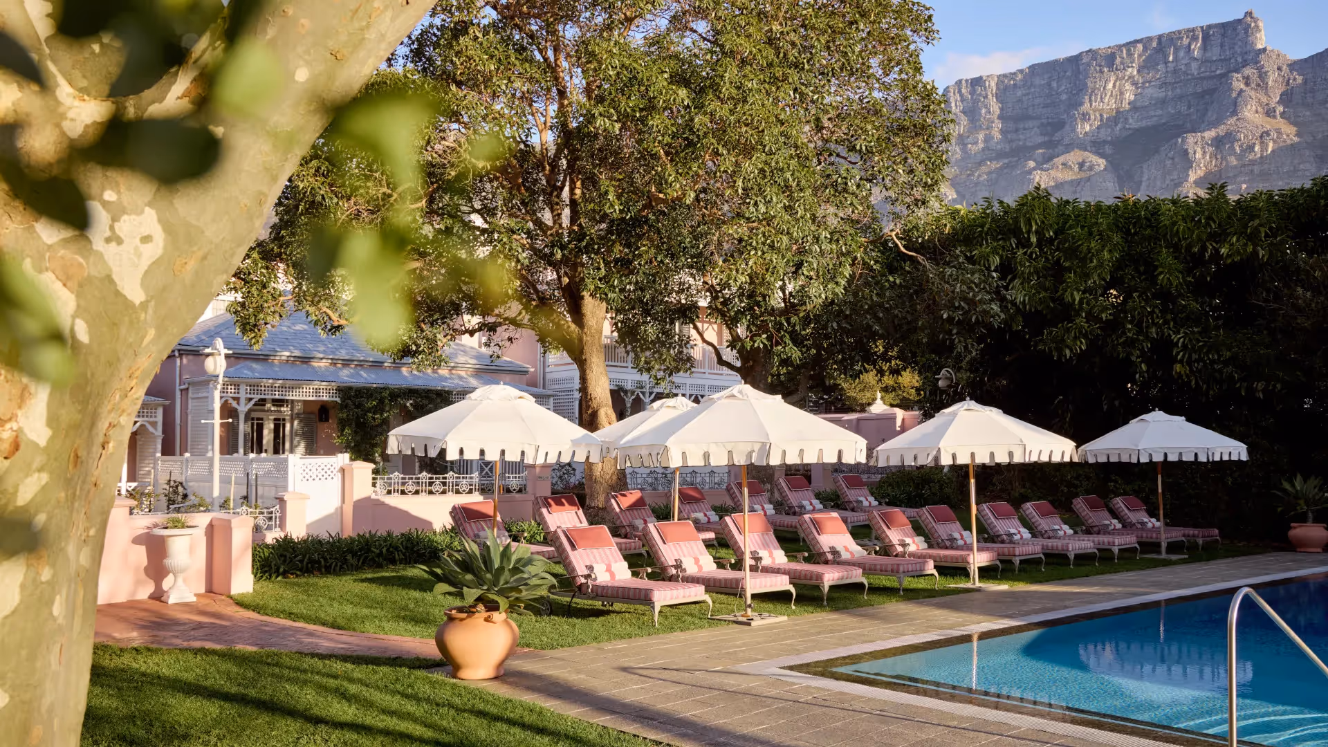 Am Fuße des majestätischen Tafelbergs erwartet Sie ein ganz besonderes Hotel: Das Mount Nelson – seit 1918 in zartem Rosa gestrichen, als Zeichen des Friedens. Dieses legendäre Haus ist weit mehr als nur eine Unterkunft – es ist eine Oase der Ruhe im pulsierenden Herzen Kapstadts.