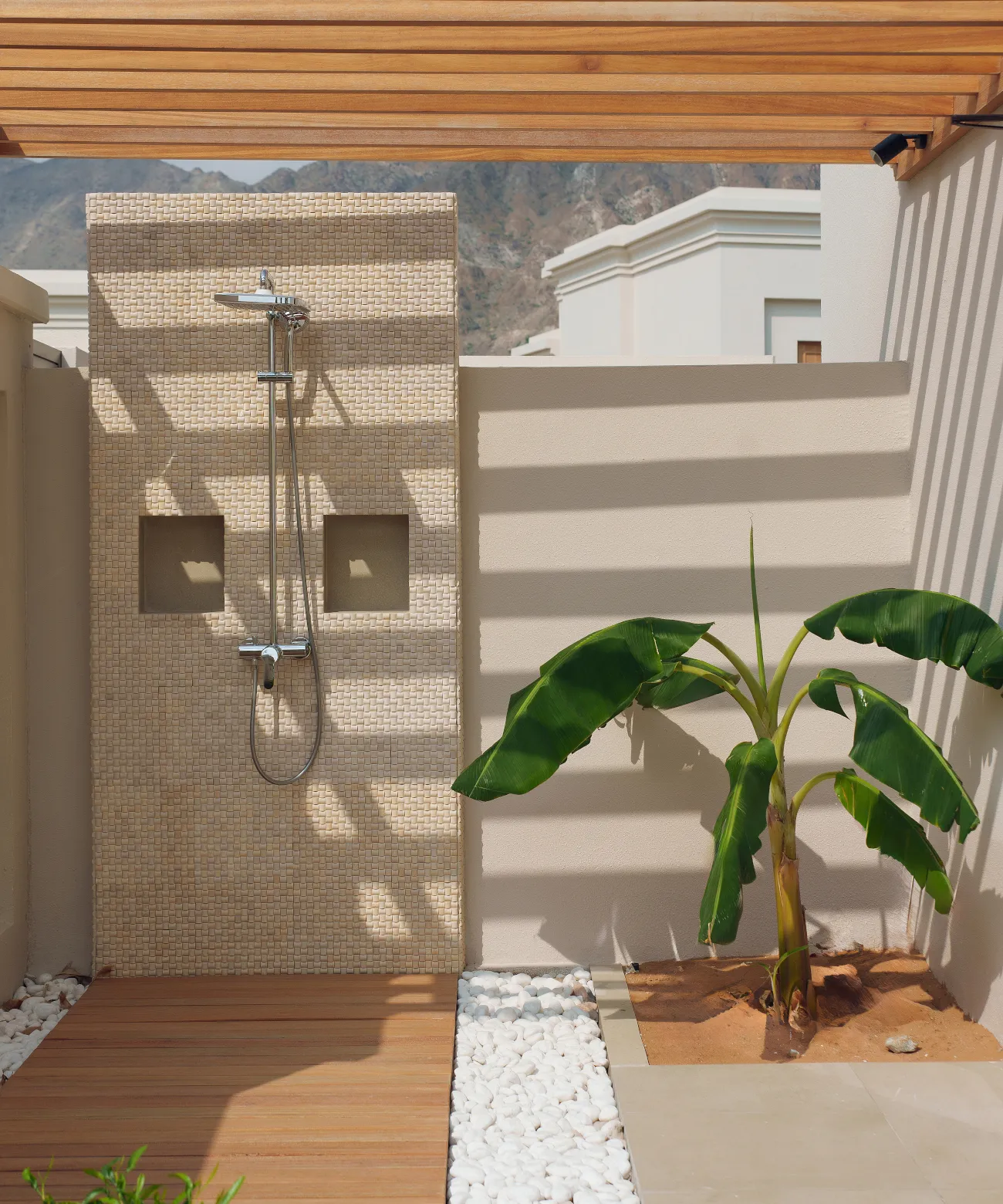 Naäma will nicht beeindrucken – Naäma will berühren. 44 private Villen mit Pool, Garten und Butlerservice verschmelzen mit der Natur: Holz, Naturstein, neutrale Farben und ungestörte Ausblicke auf Meer, Berge und Himmel. Einige Villen öffnen sich zum Strand, andere fügen sich harmonisch in die Landschaft ein.