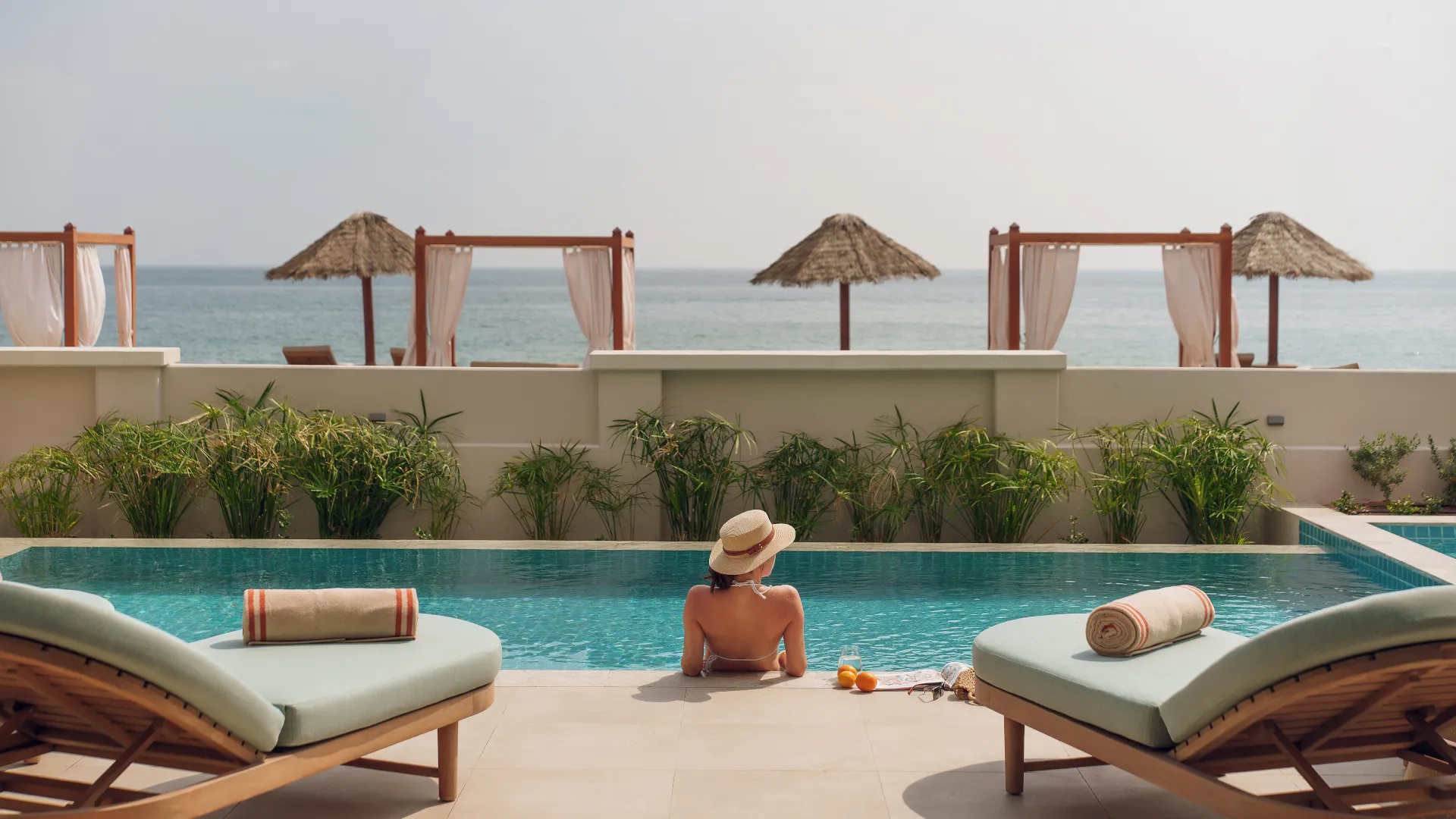 Ihre exklusive Villa am Meer bietet 325 m² puren Luxus und Entspannung. Genießen Sie ein King-Schlafzimmer, stilvolles Wohnzimmer, Essbereich, privaten Pool und Jacuzzi sowie eine Terrasse mit atemberaubendem Meerblick. Persönlicher Butler, In-Villa-Dining, Strandzugang und Valet-Parkservice machen jeden Aufenthalt unvergesslich.