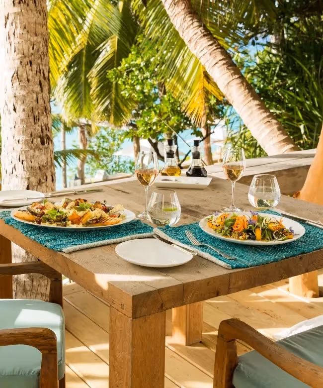 Auf North Island genießen Sie nach Ihren Wünschen: Wählen Sie ganz nach Ihrer Stimmung aus einem breiten Spektrum an Speisen und täglich frischen Menüs aus Produkten von der Insel. Diese können Sie am Strand bei Kerzenlicht und sanften Rauschen des Ozeans genießen oder ganz privat in Ihrer Villa. Die West Beach Bar bietet ähnliche Köstlichkeiten und einen herrlichen Blick auf den Sonnenuntergang. Die Sumptuous Seafood Experience begeistert mit kreativen Gerichten wie Linguine mit Tintenfischtinte und frisch gefangenem Rotbarsch.In der Piazza können Sie sogar eine Schildkröte beobachten, die während des Essens an der Ostbucht Nester anlegt. Der offene Bereich unter den Takamaka-Bäumen oder dem Sternenhimmel schafft ein einzigartiges Dining-Erlebnis. Genießen Sie außerdem einen B.O.B. Mojito in der Sunset Beach Bar – eine besondere Mischung mit lokal gewachsener Passionsfrucht und Minze.