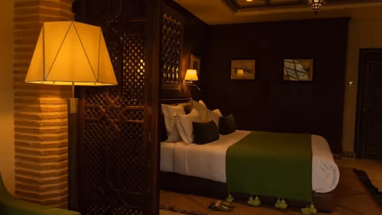 Die neun luxuriösen Pavillons im Olinto bieten höchsten Komfort und Privatsphäre. Umgeben von traditionellen Lehmwänden und in weitläufigen Gärten gelegen, spiegeln die Innenräume die marokkanische Handwerkskunst wider. Hochwertige Stoffe, Berber-Teppiche und edle Möbel schaffen eine stilvolle Atmosphäre. Einige Pavillons verfügen über einen privaten, beheizten Pool mit Blick auf das Atlasgebirge – der perfekte Ort, um den Sternenhimmel zu genießen.