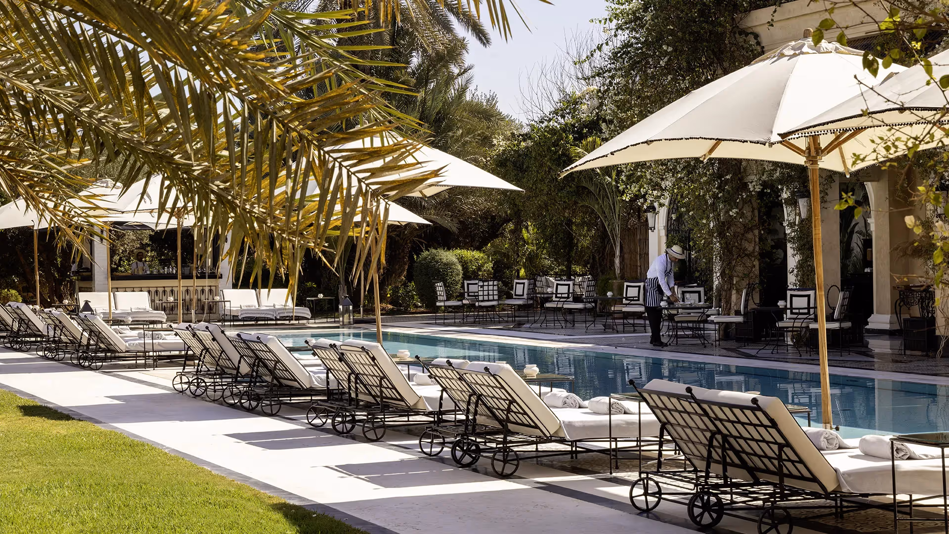 Das Palais Ronsard Relais & Châteaux befindet sich in der ruhigen Palmeraie, nur etwa 10 Minuten vom Zentrum Marrakeschs entfernt. Die grüne, exklusive Lage bietet Erholung abseits des Trubels, während der Flughafen Marrakesch-Menara in nur ca. 20 Minuten erreichbar ist.