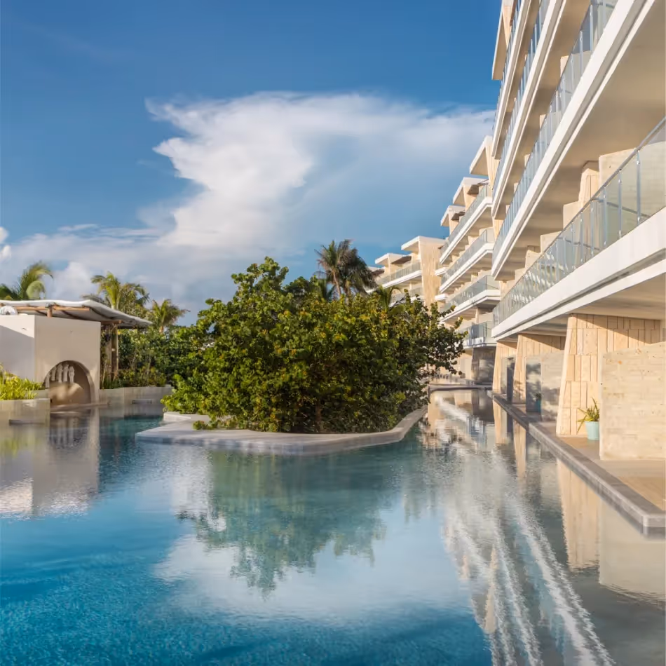 Dieses luxuriöse Wellness-Resort liegt direkt an einem 1 Kilometer langen, traumhaften Strand von Playacar an der Playa del Carmen. Hier vereinen sich lokales Flair und außergewöhnliche Genuss-Erlebnisse mit gehobenem Luxus. Das Palmaïa ist stolz darauf, sich als „Gifting-Lifestyle-Resort“ zu präsentieren. Mit seinem All-Suite-Konzept, atemberaubendem Meerblick, einer Auswahl an gesunden, exquisiten veganen Speisen und einem ganzheitlich ausgerichteten Dschungel-Spa bietet es ein unvergleichliches Erlebnis für Körper, Geist und Seele. Entdecken Sie das gesamte Gelände ganz bequem mit dem praktischen Fahrrad-Sharing-Service! Besonders hervorzuheben sind die Auszeichnungen des Resorts bei den Condé Nast Traveler Readers’ Choice Awards: Auch im Jahr 2025 wurden das Resort in der Kategorie „Bestes SPA-Reiseziel“ für die Condé Nast Traveler Readers’ Choice Awards 2025 nominiert, zusätzlich zur herausragenden Stellung, die es bereits bei den Awards 2024 erreicht hat. Zudem wurde das Resort mit dem renommierten Michelin Keys Award geehrt, der für exzellente Qualität und außergewöhnlichen Service steht.