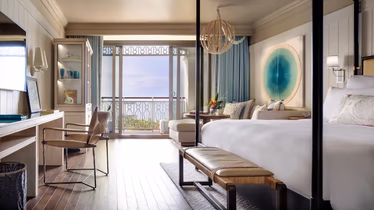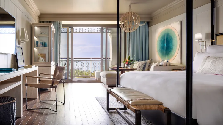 Erleben Sie modernen Luxus in den Ocean View Zimmern mit 45 m² Wohnfläche, elegant dekoriert mit bahamaischer Kunst. Zur Wahl stehen ein Kingsize-Bett für bis zu zwei Gäste oder zwei Queensize-Betten für bis zu vier Personen. Komfortable Sitzbereiche und großzügige Marmorbäder mit Doppelwaschbecken, separater Dusche und Badewanne runden das Angebot ab. Der private Balkon bietet einen ruhigen teilweisen Meerblick. Die Zimmer liegen auf den Etagen 6 bis 12.