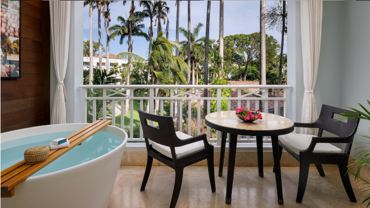 Diese stilvollen Zimmer im 3. und 4. Stock des Caribbean Village begeistern mit elegantem Mobiliar, einem Himmelbett in King-Size-Größe und einem privaten Balkon mit Blick auf die tropischen Gärten.