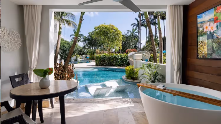 Das Sandals Barbados bietet 280 Zimmer und Suiten in 14 Kategorien, teilweise mit privatem Balkon oder Terrasse samt luxuriöser Badewanne.