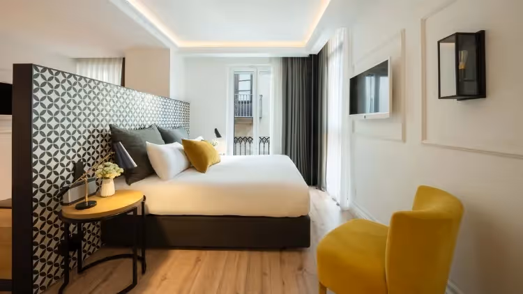 Elegante 25 m² mit einem King–Size–Bett, inspiriert vom Modernisme–Stil Barcelonas. Ein privater Balkon bietet einen malerischen Blick auf das historische Ciutat Vella. Eine Regendusche, exklusive Diptyque–Pflegeprodukte und ein abendlicher Turndown–Service sorgen für höchsten Komfort und Wohlbefinden.