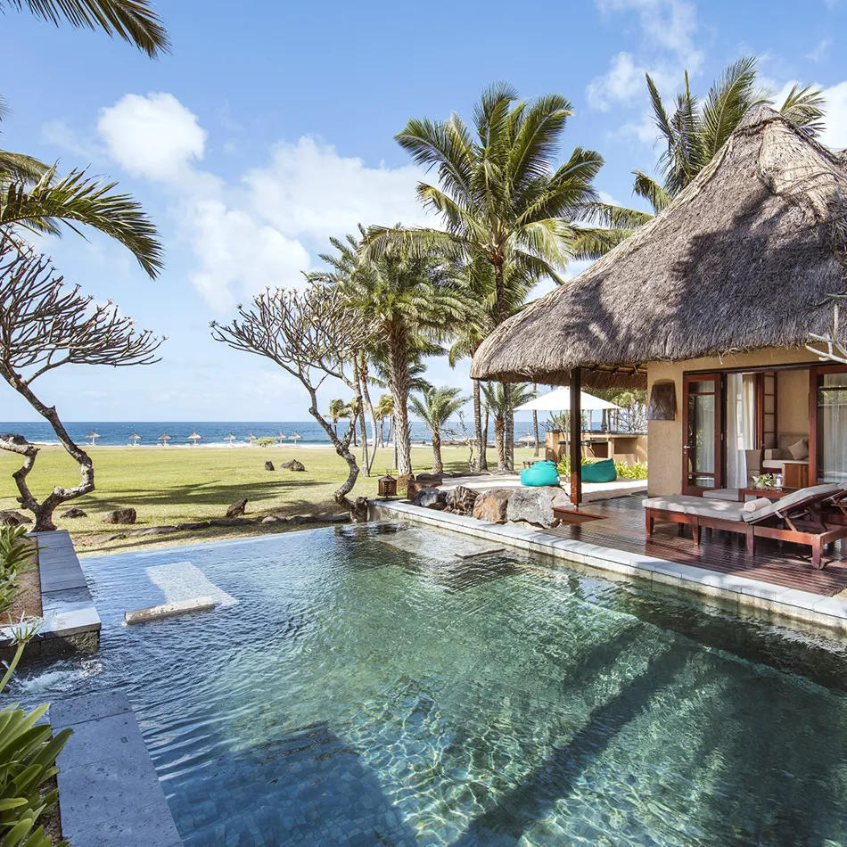 Das Shanti Maurice Resort & Spa verfügt über 61 exklusive Unterkünfte, darunter 44 elegante Suiten mit Meerblick und 17 großzügige Villen mit privaten Pools und separaten Außenbereichen. Einige Villen bieten direkten Strandzugang und höchste Privatsphäre. Die limitierte Zimmeranzahl garantiert eine ruhige, intime Atmosphäre.