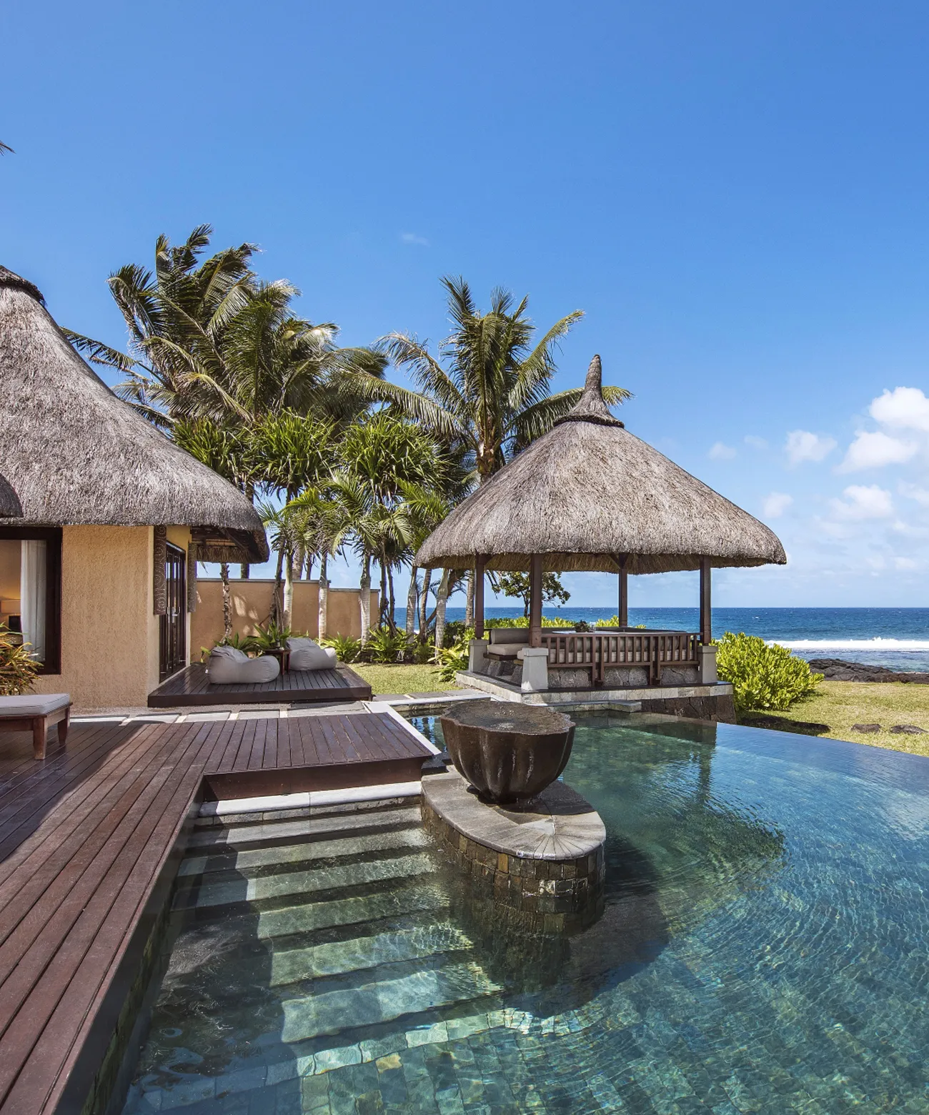 Die Oceanview Pool Villa bietet Platz für 2 Erwachsene und 2 Kinder (Extrabetten) und verfügt über ein Master-Schlafzimmer mit Kingsize-Bett. Sie besticht durch einen privaten Garten, einen beheizten 36 m² Pool, einen separaten Pavillon zum Essen sowie eine private Terrasse mit Sonnenliegen. Die 250 m² große Villa bietet modernste Unterhaltungssysteme sowie großzügige Bad- und Ankleidebereiche mit Regen- und Außendusche. Das „Bring Your Own Content“-Konzept ermöglicht das Streaming eigener Filme und Musik direkt im Zimmer. Inklusive ist zudem das exklusive Shanti Club Level Erlebnis.