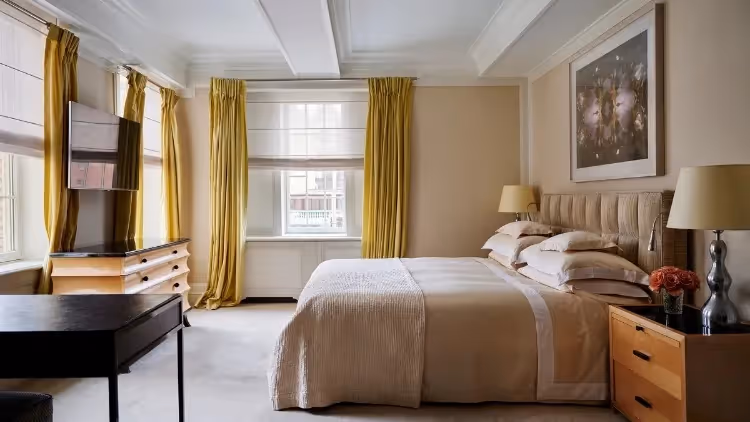 Entworfen vom renommierten Designer Jacques Grange, verbinden die 106 Zimmer und 47 Suiten im The Mark Hotel Pariser Eleganz mit modernem Komfort. Jedes Zimmer bietet ein opulentes, aber gleichzeitig einladendes Ambiente, das durch hochwertige Materialien, maßgefertigte Möbel und sanfte Farbtöne eine zeitlose Schönheit ausstrahlt.