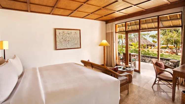Die 74 luxuriösen Unterkünfte des Resorts vereinen auf harmonische Weise traditionelles balinesisches Design mit modernem Komfort. Sie bestehen aus Villen und Lanais, die sich nahtlos in die üppige Gartenlandschaft einfügen. Jedes Zimmer besticht durch handgefertigte Möbel, natürliche Materialien und kunstvolle Details, die die reiche balinesische Kultur auf stilvolle Weise widerspiegeln.
