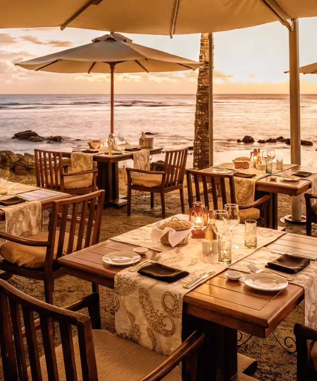 Im The Oberoi Beach Resort Mauritius erwartet Sie eine vielfältige kulinarische Welt. Im A-la-carte-Menü des „The Restaurant“ spiegeln sich verschiedene Kulturen wider: europäische, orientalische und kreolische Gerichte gehören hier zum Angebot, weshalb es zu den Top-Restaurants der ganzen Insel zählt. Das lichtdurchflutete Restaurant bietet tagsüber herrlichen Meerblick, abends sorgt eine stimmungsvolle Atmosphäre mit flackernden Fackeln und dem Funkeln des Hafens von Port Louis für besondere Momente.