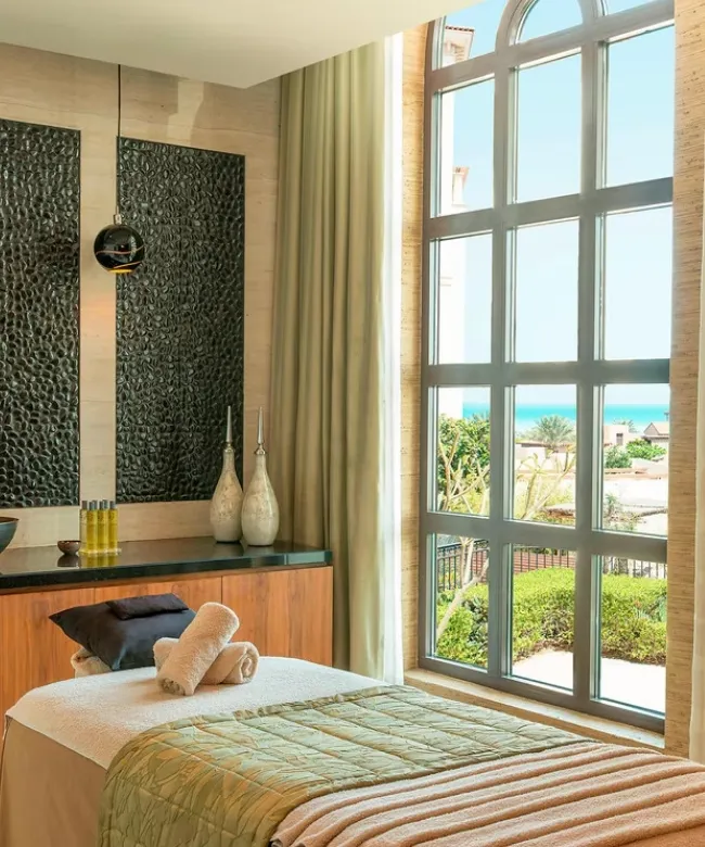 Das Spa im St. Regis Saadiyat Island Resort bietet eine luxuriöse Oase der Ruhe mit zwölf exklusiven Behandlungsräumen. Hier vereinen sich traditionelle Heilmethoden und moderne Technologien, um Körper und Geist zu revitalisieren. Das Angebot umfasst Körperpeelings, Paarmassagen, Gesichtsbehandlungen, Fußbäder, verschiedene Massagen sowie spezielle Behandlungen für Herren und Kopf- und Haaranwendungen.Für noch mehr Entspannung sorgen separate Lounges für Männer und Frauen, ein Dampfbad und ein Therapiebad, die eine ideale Umgebung für Erholung und Ruhe bieten. Ein exklusives Spa-Erlebnis, das keine Wünsche offenlässt.