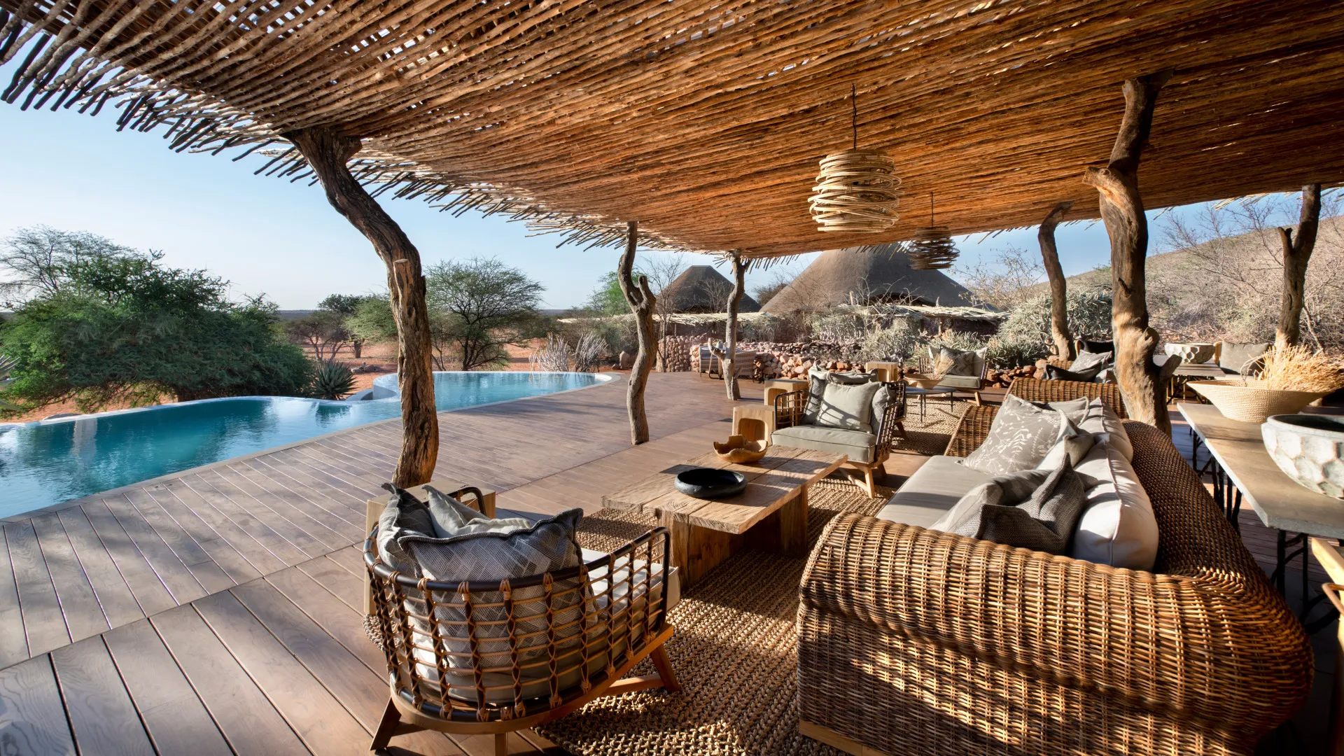 Tarkuni ist ein exklusives, privates Safari-Anwesen für bis zu zehn Gäste. Die fünf großzügigen Suiten unter einem traditionellen Strohdach bieten viel Platz, Privatsphäre und einen eigenen Außenbereich mit komfortablen Liegen. Ein persönlicher Gastgeber und Koch kümmern sich liebevoll um das Wohl der Gäste. Zur Ausstattung gehören ein gemütlicher Wohn- und Essbereich mit offenem Kamin, eine gut sortierte Weinkammer, eine Bibliothek sowie ein Spa mit Behandlungsraum. Im weitläufigen Garten laden ein umweltfreundlicher Pool, ein Lagerfeuerplatz mit spektakulärem Ausblick und ein privater Pavillon für Wildbeobachtungen oder Massagen zum Entspannen ein. Direkt vor der Tür sorgt eine natürliche Wasserstelle für tierische Begegnungen inmitten der Kalahari.