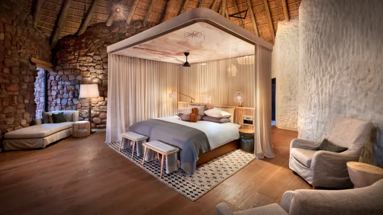 Die Loapi Safari Homes bei Tswalu bieten sechs exklusive Rückzugsorte, die jeweils als unabhängiges Mini-Camp konzipiert sind – mit eigenem Guide, Tracker und Hausmanager. Die großzügig geschnittenen Zeltvillen verbinden luxuriöse Ausstattung mit naturnaher Offenheit: private Küche mit Koch, Bar, schattige Terrassen mit Tagesbetten, Tauchbecken, Feuerstelle und Spa-Anwendungen im Zelt. Weitläufige Wohnflächen von bis zu 433 m² bieten absolute Privatsphäre.