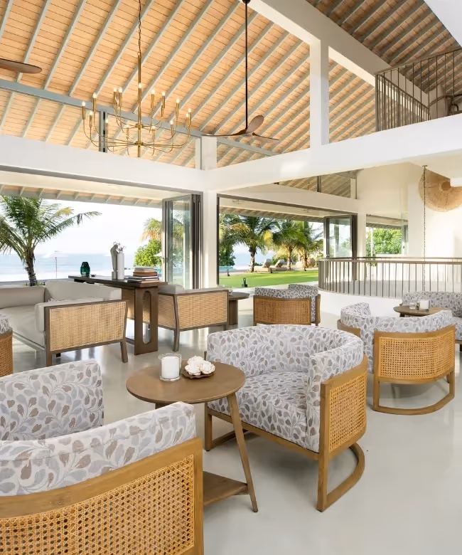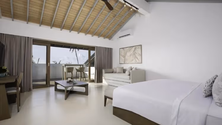 Minimalistische Rückzugsorte. Die sieben Suiten mit Meerblick sind so gestaltet, dass sie ultimativen Komfort und Stil bieten. Das Design spiegelt die zarte Schönheit der Korallenriffe wider und setzt auf eine moderne, minimalistische Ästhetik mit klaren Linien, neutralen Farben und natürlichen Materialien.
