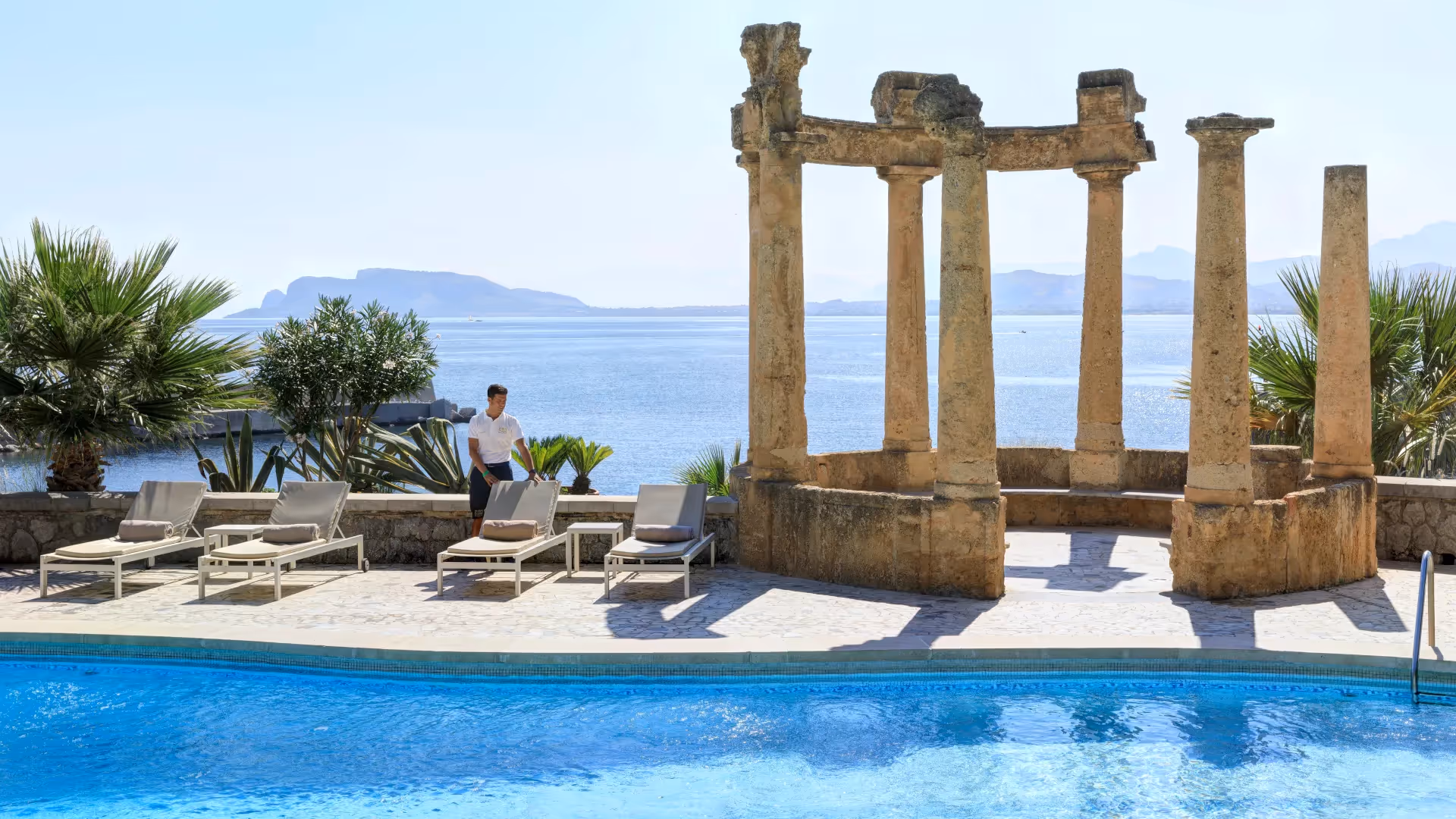Jedes der 72 Gästezimmer und 28 Suiten vereint klassische Antiquitäten und edle Stoffe in beruhigenden Farbtönen, was den Räumen eine frische, helle und typisch sizilianische Atmosphäre verleiht. Alle Details strahlen eine edle Eleganz aus: Hohe Decken, Betten mit Wandteppichen und Wände in tiefem Blau, Gold und Salbei. Die Designer haben jedem Raum seinen eigenen Charakter verliehen, sodass kein Zimmer dem anderen gleicht. Einige bieten einen atemberaubenden Blick auf das Tyrrhenische Meer oder den majestätischen Berg Pellegrino.
