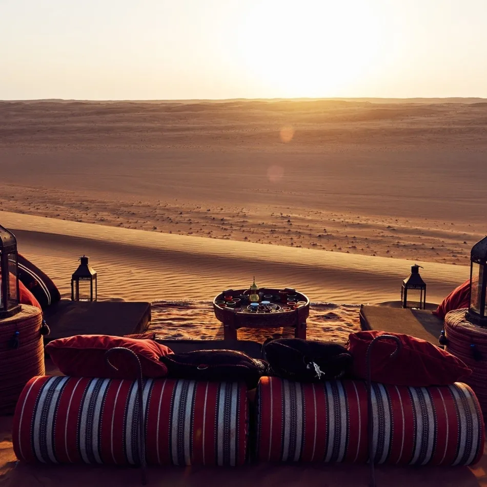Nach dem Frühstück verlassen Sie Muscat in einem komfortablen Geländewagen. Auf dem Weg in die Wahiba Wüste erwarten Sie faszinierende Zwischenstopps. Ihr erster Halt ist der malerische, weiße Sandstrand des Fischerdorfs Finns. Weiter geht es ins grün schimmernde Wadi Shab, wo Sie eine entspannte Wanderung zu natürlichen Felsenpools mit kristallklarem Wasser unternehmen. Die Route führt Sie anschließend entlang der Küste, vorbei an charmanten Dörfern, bis zum berühmten Wadi Bani Khaled. Dort laden türkisfarbene Naturbecken zum Baden ein – umgeben von schattenspendenden Palmen genießen Sie ein exklusives Picknick inmitten dieser paradiesischen Kulisse.Am Nachmittag beginnt Ihr Wüstenabenteuer: Die Fahrt durch die majestätischen Dünenlandschaften der Wahiba Sands endet im stilvollen Wüstencamp, wo Sie den Tag mit einem spektakulären Sonnenuntergang inmitten der Stille der Wüste beschließen.