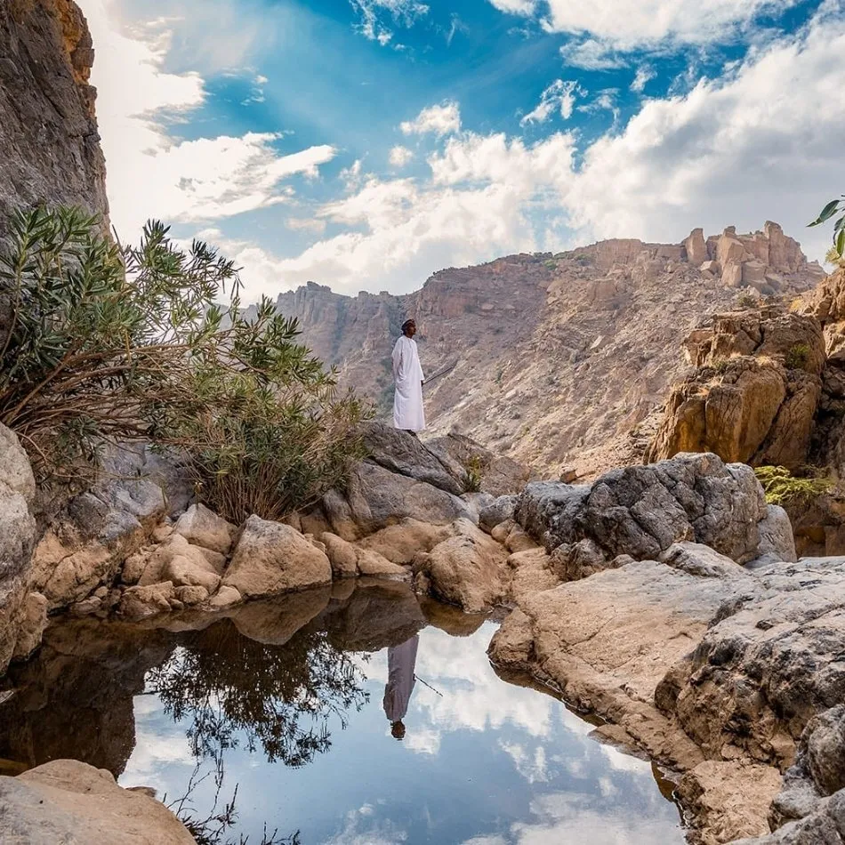 Der letzte Tag Ihrer Rundreise beginnt mit einem entspannten Spaziergang durch das malerische Bergdorf Misfat Al Abriyeen, bekannt für seine traditionellen Steinhäuser und grünen Terrassen. Über das Hadjar-Gebirge führt die Route zum abgelegenen Dorf Bilad Sayt, eingebettet zwischen sattgrünen Feldern und Palmen – ein idealer Ort für Fotos und Naturliebhaber. Die Fahrt durch das spektakuläre Wadi Bani Awf bietet dramatische Schluchtenblicke, bevor Sie die imposante Nakhal-Festung besuchen und von den Zinnen die umliegende Berg- und Oasenlandschaft genießen. Zum Abschluss entspannen Sie in den wohltuenden heißen Quellen von Ain Thowara. Am späten Nachmittag Rückfahrt nach Muscat, wo Ihre Reise endet oder Sie eine letzte Nacht in der Hauptstadt verbringen können.